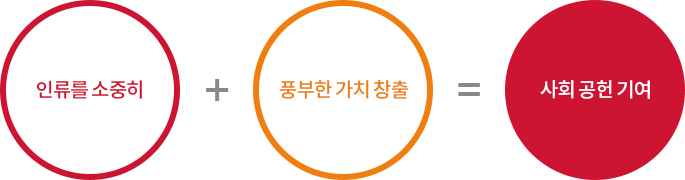 인류를 소중히 하고, 창의적인 아이디어로 고객의 니즈에 부합하는 풍부한 가치를 창출하여, 사회 공헌에 기여한다.