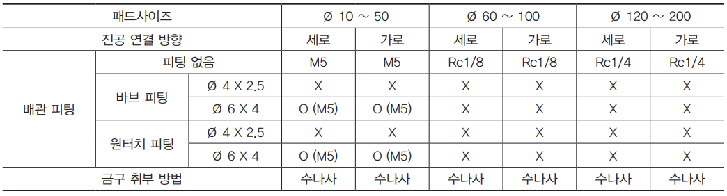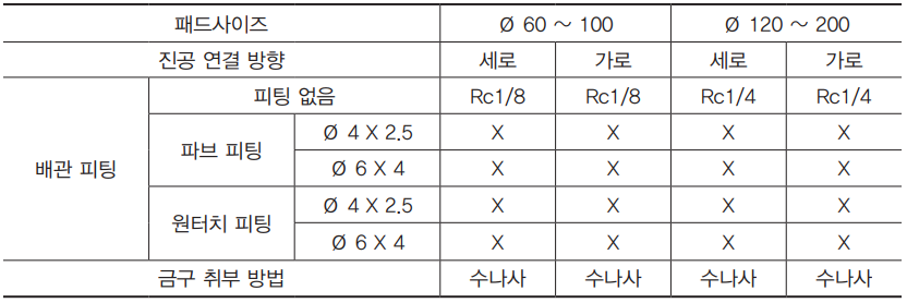 ● 버퍼식 금구 부착 패드 표준 사양