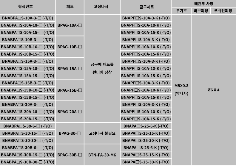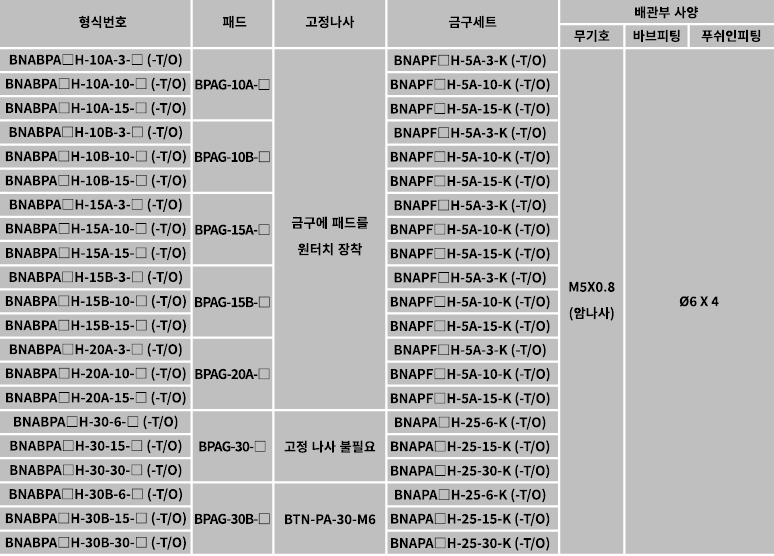 ● 버퍼식 금구 부착 패드[피팅없음] 표준 사양